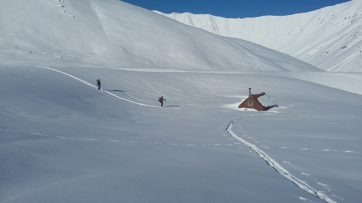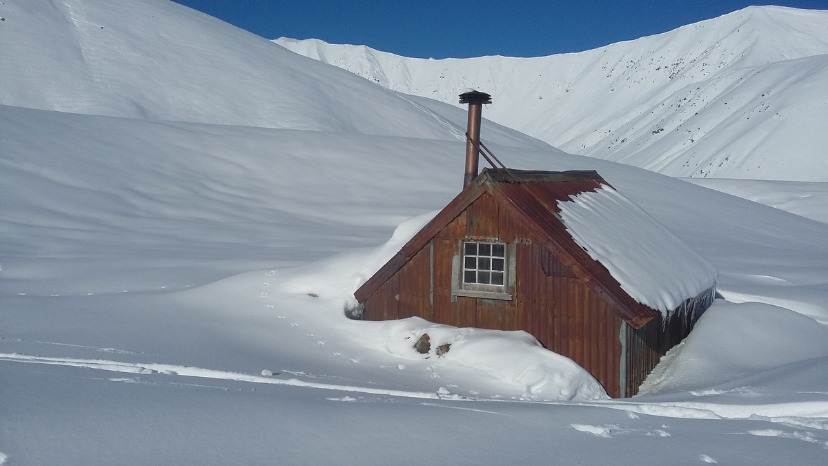 Camp Stream Hut is an old musterers hut, which is now maintained by the Mackenzie Alpine Trust. It rustic (no insulation, concrete floor and a little drafty), but the Trust has installed a new wood burner and stocks it with firewood. Despite the drafty hut, the woodburner makes it pretty cozy when its on! There is plenty of flat space next to the hut to pitch a tent if the hut happens to be full – it is getting more popular with ski touring parties, so consider this if you’re plannign to stay overnight. The hut has 5 bunks, and it’d be a squash with 5 people and gear. A donation to the Trust is requested to support the expenses for maintaining and servicing the hut.